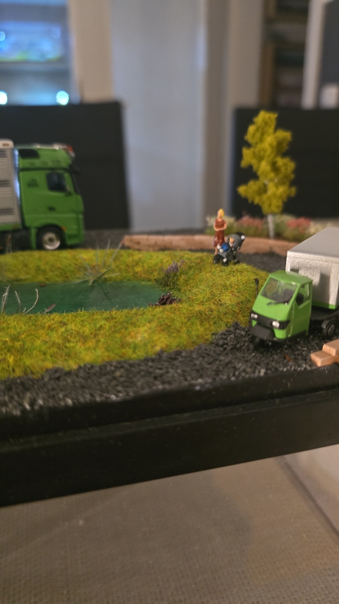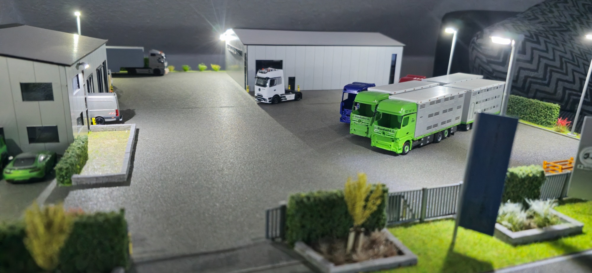 Auch bei diesen Sudahl Modell habe ich mit der Landschaft anfangen . Wegen den Aufbauten wie in den anderen Projekten . Da es den alten Zug nicht mehr gab durch ein Unglück . Also sollte ich dann beide Züge bauen. Also habe ich dann gleich mehr Aufbauten geordert. Gut das Sebastien so flexibel ist. Und sich dann auch die Zeit nimmt alles umzusetzen. Was ich super finde das er sich so viel Mühe gibt. Da es ja bisschen gedauert hat habe ich hier auch schon mal mit den anderen Sachen angefangen habe. Wie bei den anderen Projekt. Hier habe ich in der gleichen Reihenfolge Lackiert wie bei dem anderen Projekt. Ich habe immer wieder mal kleinigkeiten getan , z.b Begrenzungsleuchten angebracht als Decal und Logos. Und andere Decals die ich noch in meinen Ordner hatte. Jetzt fehlen nur noch der Rest der Decals und dann können die 3D Teile dran und dann kann Das Modell auf die Landschaft und übergeben werden. Endlich kamen die Letzten Decal s an und ich konnte auch dieses Modell fertig stellen mit den Decal s. Am nächsten Tag habe ich dann die 3D Teile dran gemacht, somit konnte auch dieses Modell fertig auf die Landschaft. So mit war auch das Modell fertig. Aber die Landschaft nicht, da Alina noch ein Kinderwagen wollte natürlichen machen wir auch sowas als extra Wunsch fertig. Wenige Tage später war auch die übergabe. Beide haben sich gefreut was mich auch gefreut hat. Ich hatte auch was von der übergabe da ich mir den neuen Lkw fotografieren konnte für neuen Bausatz. Das war auch hier mit dem Projekt.....