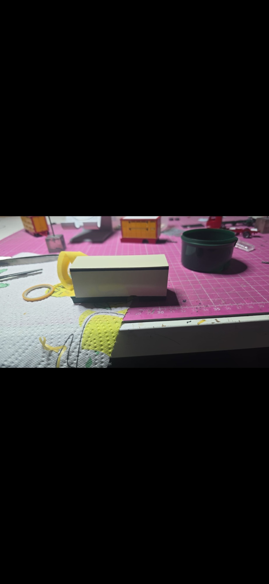 Nach seinen MAN wollte Dome auch seinen alten DAF als Modell haben. Ich habe gesagt bekommen wir hin ohne genau zu wissen wie ich da vor gehe mit dem ganzen streifen. Also habe ich erstmal nen DAF bestellt und liefern lassen wie auch ein 2 Achs Fahrgestell. Dann habe ich beides schonmal Grundiert und Lackiert. Einige Tage später habe ich dann schon mal den Aufbau gebaut den ich immer selbst Baue beim Pferdetransporter. Als ich den Aufbau zusammen geklebt hatte tat ich ihn spachteln und trocknen. 2 - 3 Täge später habe ich das Fahrerhaus abgeklebt und Grün lackiert so das ,das abgeklebte im Elfenbein bleibt. Anschließend habe ich mich wieder an den Aufbau gemacht und ihn geschliffen und Grundiert. Als ich dann mal wieder Zeit und lust hatte habe ich den Aufbau lackiert in Elfenbein. Nach der Trocknungszeit habe ich die Verkleidung Grün lackiert.